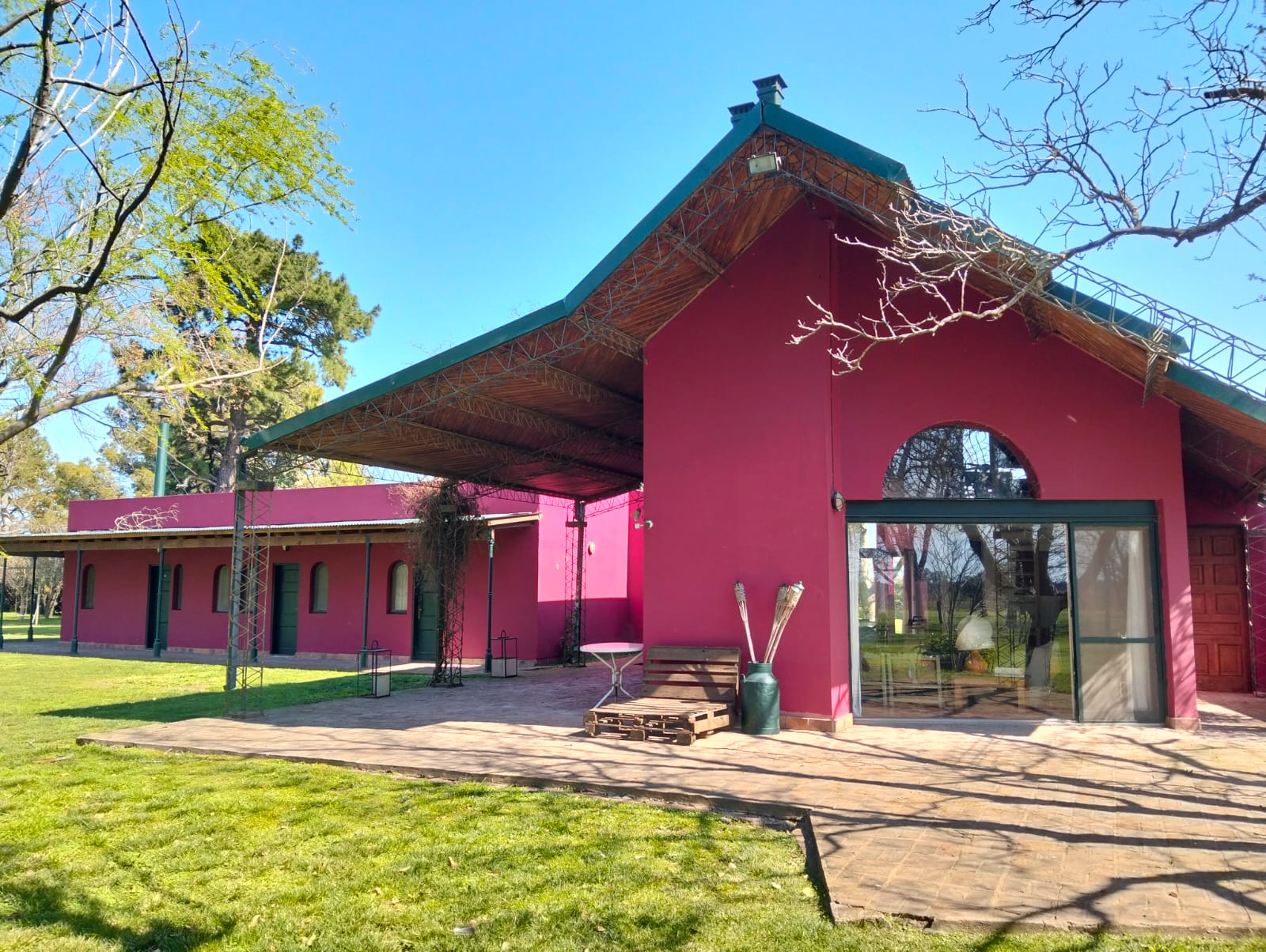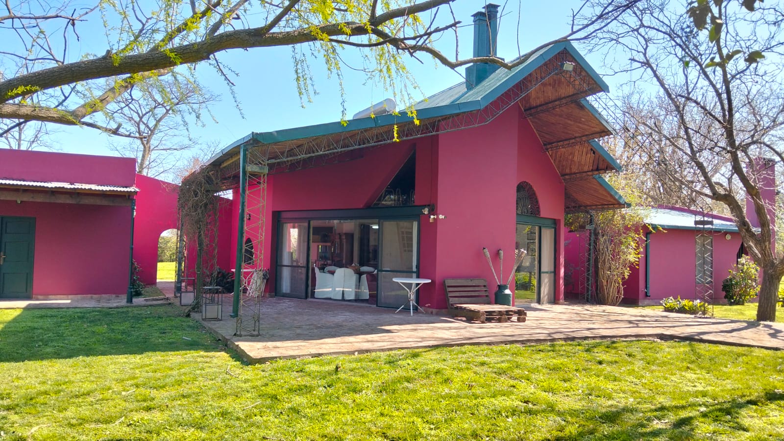 *Casa de huéspedes: 150m2 edificados, tres suites matrimoniales, cada una con su respectivo baño privado, más baño de servicios, lavandería y amplio quincho con horno siciliano a leña y parrilla semicubierta, todo el complejo calefaccionado por losa radiante.